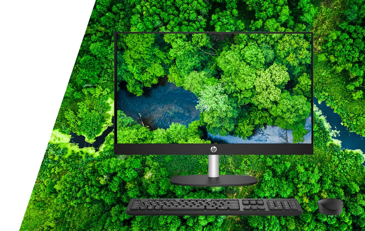 "Esta compacta Desktop HP All-in-One de 23,8"" empodera a las personas para que hagan más con menos consumo. Se fabricó de manera responsable usando plásticos reciclados posconsumo y plásticos de origen oceánico y reciclados. Además, cuenta con el registro EPEAT® Gold y la certificación ENERGY STAR®. Gracias a su potente procesador, memoria actualizada y funciones mejoradas para realizar múltiples tareas, obtendrá, sin lugar a duda, un mejor desempeño.