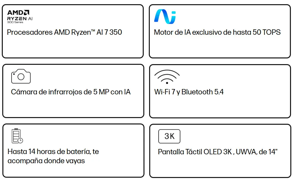 • Unidad de procesamiento neuronal: AMD Ryzen™ AI (50 TOPS de NPU)