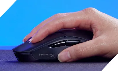 El HyperX Pulsefire Haste 2 Wireless tiene una sólida parte superior que conserva los 61 g y las 100 horas de duración de la batería del Pulsefire Haste inalámbrico original. Suma una conexión inalámbrica de modo dual para cambiar entre las conexiones inalámbricas de 2,4 GHz y Bluetooth. También incluimos nuestros componentes personalizados HyperX de alto rendimiento, entre los que se destaca el sensor HyperX 26K que detecta hasta 26 000 DPI nativos e interruptores HyperX personalizados que admiten hasta 100 millones de clics. También disfrutarás de control físico superior del mouse con patines de baja fricción y cinta de agarre.