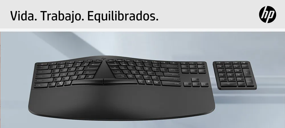 Cree un espacio que funcione para usted con el teclado inalámbrico ergonómico HP diseñado científicamente. El diseño de zonas divididas se adapta a usted, mientras que las veinte teclas programables y el teclado numérico independiente ofrecen personalización total. Y gracias a las dos formas de conectar dispositivos, puede trabajar con la seguridad de que dispone de las herramientas adecuadas para la tarea que necesita hacer.